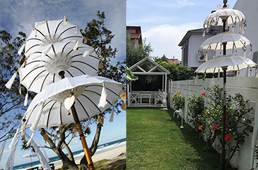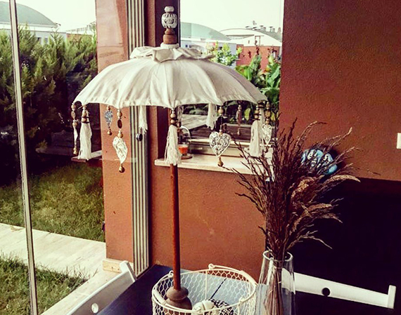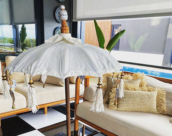 Bali şemsiyesi çeşitli ebatlarda bambu ağacından gövdesi ve keten kumaştan yapılan evlerinize şıklık katacak dekoratif şemsiyelerdir. Ev dekorasyonunda sehpa üstü, masa üstü gibi evinize farklı renk ve hava katmak adına kullanabilirsiniz. Ve Büyük boy şemsiyeleri plaj ve havuz kenarlarında hem gölgelenmek hemde şık bir hava katmak için kullanabilirsiniz.